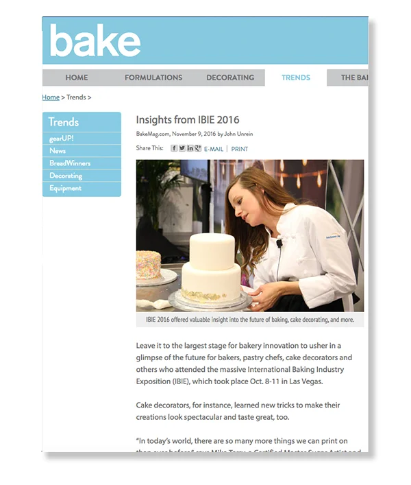 Videos more videos! Press Fox 2 News The Cupcake Project TasteMakers/ABMauri events Feast Magazine Feed Me with Amanda Bake News 12 New Jersey Tiny Green Mom AXS Fox 2 Now Bake Green Wedding Shoes Bake WBAL TV 11 NJ.com People Magazine St. Louis Post-Dispatch St. Louis Magazine TLC Instagram